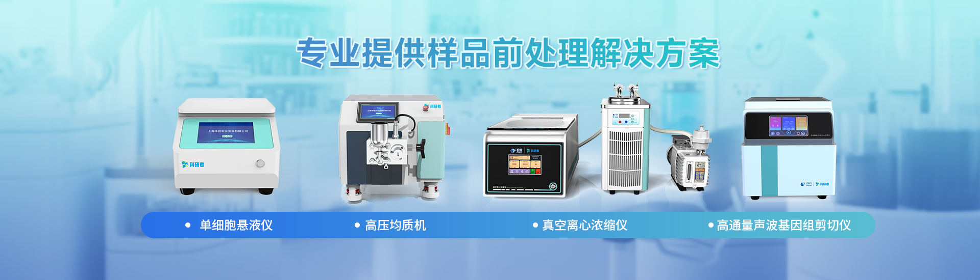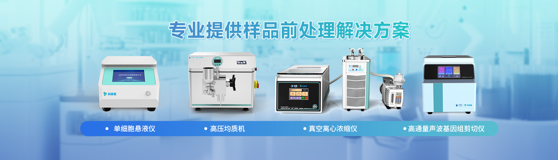 在生命科學、生物醫藥等前沿研究領域,可靠的樣品前處理設備是實驗成功的基礎。上海凈信旗下“科研者”系列產品(真空離心濃縮儀,高壓均質機,單細胞懸液制備儀,高通量聲波基因組剪切儀),專為科研需求設計,為實驗室提供值得信賴的完整解決方案。