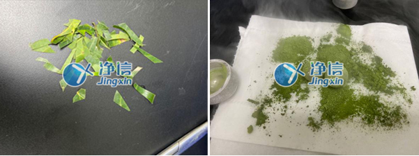 將樟樹葉片剪小段后放入若干ML研磨罐中,加入特定規格的研磨介質,然后把研磨罐放入液氮眾泡制幾分鐘,泡制至超低溫后放進上海凈信多樣品研磨儀內,設置好研磨儀工作時間和頻率,啟動設備。