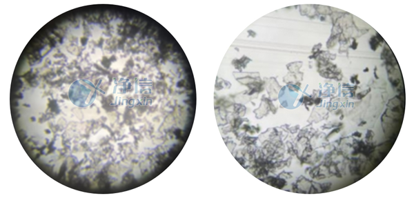 經全自動浸入式液氮冷凍研磨儀處理后的PVA和絲素蛋白在肉眼觀察下,呈現細膩的狀態。通過顯微鏡觀察,和以前用舊款儀器研磨的樣品對比發現,無論是在低倍還是高倍狀態下,通過凈信研磨儀處理的樣品的顆粒細膩程度都較優。舊款儀器處理的樣品在高倍鏡下觀察還存在一定程度的組織結構,而凈信研磨儀處理的樣品已成均勻顆粒狀。