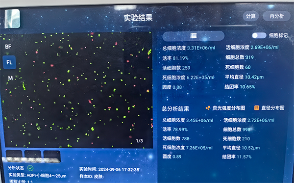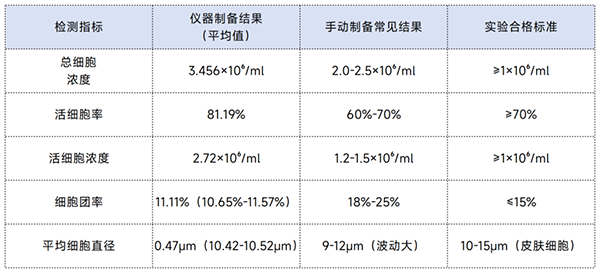 實(shí)驗(yàn)結(jié)果也印證了這一點(diǎn):儀器制備的懸液濁度僅 0.89.細(xì)胞平均直徑 10.52μm(符合皮膚細(xì)胞正常范圍),后續(xù)做流式檢測(cè)時(shí),雜質(zhì)干擾信號(hào)比手動(dòng)法低了 18%。