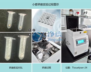 小麥樣品中提取DNA,之前采用研缽手工研磨的方法,在研缽內(nèi)倒入液氮,在凍干狀態(tài)下快速研磨,研磨過程中葉脈不易研磨,整體研磨樣品不充分,影響實(shí)驗(yàn)效果,因此選擇上海凈信多樣品組織研磨儀。