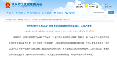 11月12日,武漢衛(wèi)健委發(fā)布消息稱,發(fā)現(xiàn)3份巴西進(jìn)口牛肉標(biāo)本新冠病毒核酸檢測(cè)呈陽(yáng)性。