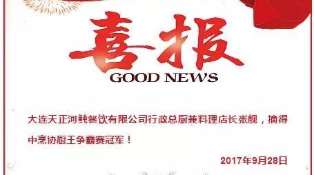 2017年9月28日,大連天正河鲀餐飲有限公司摘得中烹協廚王爭頸賽冠軍!