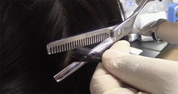 貼近頭皮表皮毛發3cm處剪取毛發樣品。采集毛發的部位為后腦,此部位生長速率變化小、處于生長期的頭發多,如果在頭部采集有困難,也可以采集其他部位,如腋下、腿部或陰部等。采集毛發時,先使用打薄剪從被測者后腦貼近頭皮處采集樣品,3-5cm長度頭發50根,大概一小撮,揉成一團差不多1元硬幣大小。當然,如果能多取就多取一些,盡量收集顏色深的頭發樣本。毛發檢測吸的時間范圍是半年左右,短則3個月,長則1年。