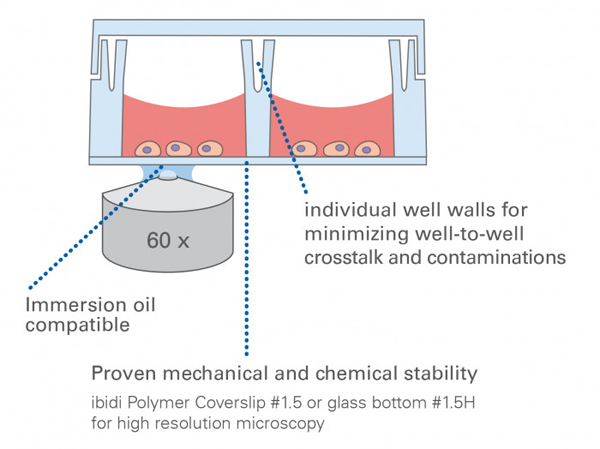 μ-Slide 8孔獨立高壁腔室載玻片,玻璃底
