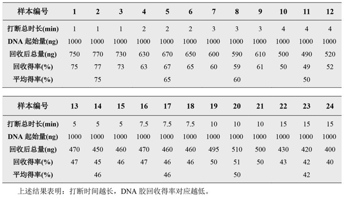 2.不同打斷時長下的回收得率: